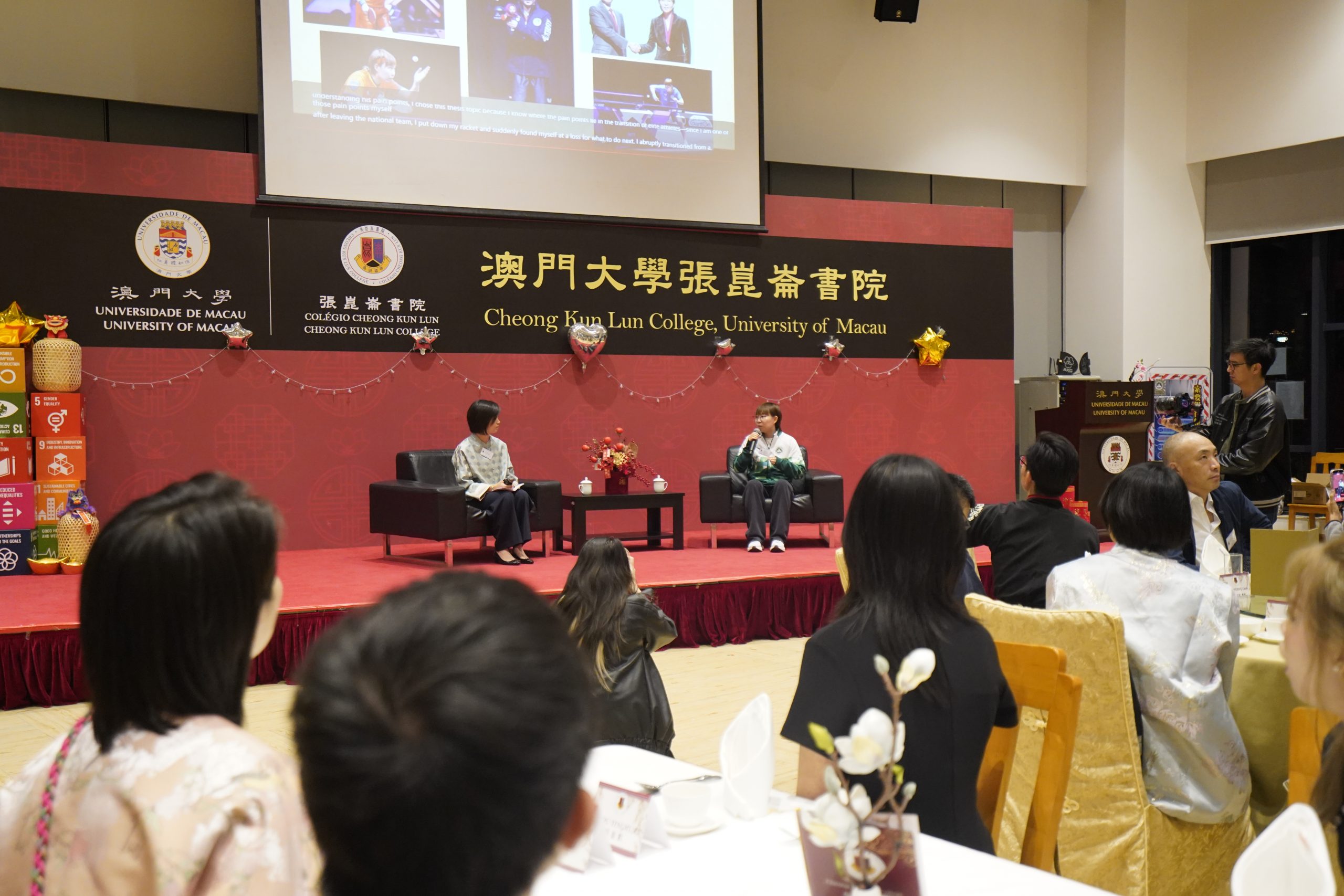 澳門大學張崑崙書院日前舉辦中式高桌晚宴,特邀前中國國家乒乓球隊主力、現任天津大學體育部副教授、世界冠軍朱雨玲教授擔任嘉賓,以「從世界冠軍到朱老師的多元身份」為主題,分享她從運動員轉為學者、教育工作者,再以澳門代表隊身份重返國際賽場的非凡歷程。活動吸引眾多師生參與,現場氣氛熱烈。